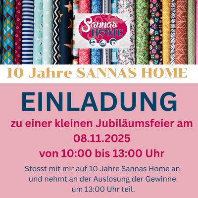 Kommt vorbei und feiert mit mir! Nehmt noch am Gewinnspiel teil und gewinnt eine Experience 450, Nähkurse und einen Einkaufsgutschein, sowie ein paar Kleingewinne.